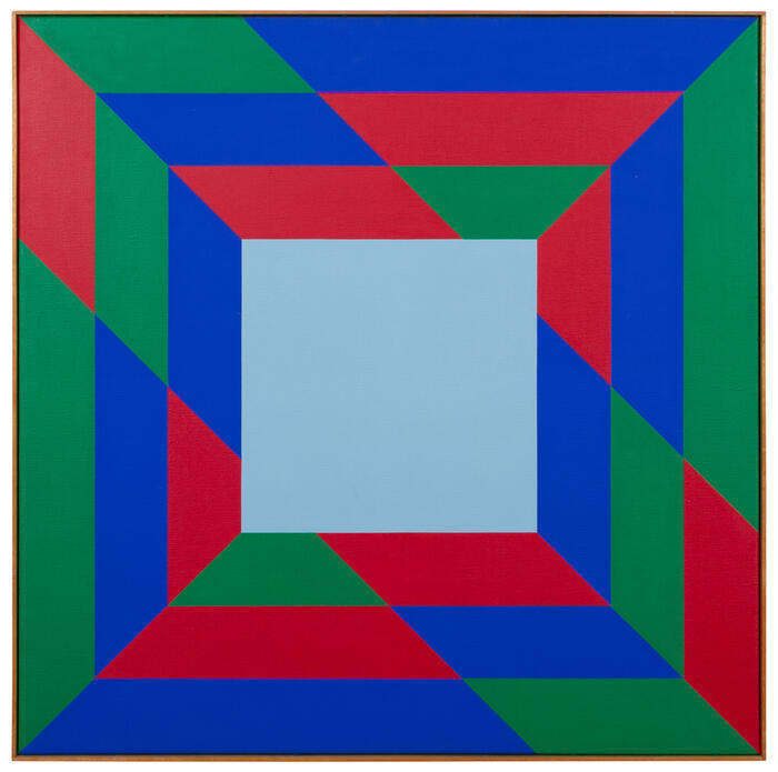 Die Biografie von Verena Loewensberg ist zurückhaltend. In einem raren Interview, das ich 1977 in ihrer mit klugem Understatement eingerichteten Zürcher Wohnung führen konnte, sinniert sie darüber, dass sie um 1935-36 ihr erstes konkretes Bild wie in einem Traum vor sich gesehen habe. Dieses in Texten zu ihrer Malerei immer wieder erwähnte Erlebnis vermittelt in der Tat eine für sie ungewohnt persönlich gefärbte Aussage. Ihre Bilder sind denn auch „ohne Titel“ mit dem Jahr der Entstehung angeschrieben; schriftliche Äusserungen existieren nicht. „Ich habe keine Theorie, ich bin darauf angewiesen, dass mir etwas einfällt.“ Auch das bleibt eine der wenigen Feststellungen zur eigenen Person. 1936 nimmt sie an der für die Schweizer Moderne wegweisende Ausstellung, „Zeitprobleme in der Schweizer Malerei und Plastik“ im Kunsthaus Zürich mit zwei Farbstift-Arbeiten teil. Abstrahierend angelegt, ist sie noch nicht bei ihrem geometrisch orchestrierten Figurenvorrat angelangt. Die Texte des bescheidenen, kleinformatigen Katalogs vereinen gewichtige Zeitstimmen: Die kunsthistorische Einleitung ist zugleich Aufforderung an ein zögerndes Publikum, „mit den Augen der heutigen Maler“ zu sehen. Verfasst hat diese der Kunst- und Architekturhistoriker Sigfried Giedion, unentbehrlich für die Promotion der Avantgarde. Le Corbusier äussert sich emphatisch über den Abgesang der verstaubten, noch immer die Bühne besetzende Künstlergeneration und Max Bill publiziert in dezidierter Kleinschrift gedruckt seine erste Definition „konkrete gestaltung“. Die Exponate wirken in der Tendenz unscharf zusammengewürfelt, Geometrie an einem kleinen Ort.
